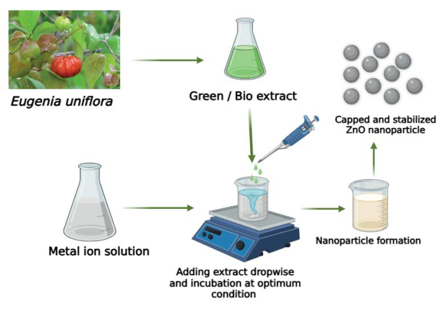 ArticleViewAbstractPharmacognosy Journal,2025,17,4,506-510.DOI:10.5530/pj.2025.17.63Published:August 2025Type:Research ArticleSynthesis and Characterization of Biogenic Zinc Oxide Nanoparticles Using Eugenia uniflora Extract and its Anticancer PotentialPallab Kar, Ayodeji O. Oriola, and Adebola O. Oyedeji Pallab Kar1*, Ayodeji O. Oriola2*, Adebola O. Oyedeji1,2 1African Medicinal Flora and Fauna Research Niche Area, Walter Sisulu University, Nelson Mandela Drive, P/Bag X1, Mthatha 5117, SOUTH AFRICA. 2Department of Chemical and Physical Sciences, Walter Sisulu University, Nelson Mandela Drive, P/ Bag X1, Mthatha 5117, SOUTH AFRICA. Abstract:Introduction: Green synthesized nanoparticles have continued to be an important bioresource, exhibiting targeted delivery to diseases’ active sites with considerable eco-friendliness and effectiveness. Objective: In this study, the medicinally useful Eugenia uniflora L. through green synthesis with zinc oxide nanoparticles (ZnONPs), was potentiated for its anticancer activity. Materials and Methods: The leaf aqueous extract of E. uniflora (EU) was biosynthesized with zinc acetate dihydrate precursor to develop EU-ZnONPs. Characterization was based on field emission scanning electron microscopy (FESEM), high-resolution transmission electron microscopy (HRTEM), ultraviolet-visible (UV-Vis) spectroscopy, and energy-dispersive X-ray (EDX) spectroscopy. The anticancer potential of EU-ZnONPs was based on MTT-based cytotoxicity (CC50) against human cancerous (HepG2 and ACHN) cell lines. Results: The FESEM revealed spherical-to-cubical shaped EU-ZnONPs with 40 and 80 nm average size ranges. Further microscopic evaluation by HRTEM showed that the bulk of the nanoparticles (NPs) are spherical, ranging from 5–30 nm in size. The UV-Vis absorption peak at 387 nm agreed with the characteristic 300-400 nm peak range of biogenic ZnONPs. The presence of Zn and O at elemental weight percentages of 73.55 and 23.05% confirmed the successful green synthesis of the Eu-ZnONPs. At 48 h post-treatment, the cytotoxicity against HepG2 and ACHN cancer cell lines was concentration-dependent, with CC50 values of 54.21 ± 0.06 μg/mL and 33.36 ± 2.25 μg/mL, respectively. Conclusion: This study has shown that EUZnONPs possess notable cytotoxicity against HepG2 and ACHN cancer cells, thus suggesting E. uniflora extract-based ZnONPs as a promising anticancer bioresource. Keywords:Anticancer, Eugenia uniflora, Green synthesis, ZnO NanoparticlesView:PDF (560.45 KB) PDF Images Green synthesis of ZnONPs using Eugenia uniflora leaf extract ‹ In-Silico Study of Bioactive Compounds from Moringa oleifera Fruit as Anti Premature Senescence Agents in Cardiac Cells: A Study on the p53 Protein up Comparative Phytochemical, Antioxidant, and Antibacterial Study of Different Solvent Extracts of Cissus hastata Leaves ›