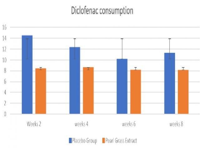 ArticleViewAbstractPharmacognosy Journal,2020,12,2,303-310.DOI:10.5530/pj.2020.12.48Published:March 2020Type:Original ArticleEffects of Pearl Grass Extract Capsules on Osteoarthritis SubjectNita Sari Wijaya, Katrin Basah, and Anton Bahtiar Nita Sari Wijaya1, Katrin Basah2, Anton Bahtiar1,* 1Department of Pharmacology and Toxicology, Faculty of Pharmacy, Universitas Indonesia, Kampus UI Depok, 16424, INDONESIA. 2Department of Phytochemistry, Faculty of Pharmacy, Universitas Indonesia, Kampus UI Depok 16424, INDONESIA. Abstract:Pearl grass extract, a standardized bioactive polar extract of the herbs of Hedyotis corymbosa, is preclinically proven to have an activity to osteoarthritis and rheumatoid arthritis properties in an animal model. The current clinical study has evaluated the efficacy and safety of Pearl grass extract of osteoarthritis subjects. This research was a pilot study of osteoarthritis subjects using Parallel double-blind study design. Subjects have normal renal and liver function, above 50 years of age, and has a sign and symptoms of osteoarthritis included in the study. In the treatment, Pearl grass capsules were given as one capsule once daily for eight weeks, throughout the study, the weekly assessment to evaluate the adverse event. Thirty subjects of mean age 55.90 ± 3.7 years were evaluable. Pearl grass extract capsules did not change renal and liver function in 56 days treatment. Pearl grass capsule markedly reduced the consumption of analgesic drug compared with placebo groups. Pearl grass capsules also decreased pain scale better compare with placebo. Keywords:Clinical efficacy, Pearl grass extract capsules, Quercetin, VAS scale, WOMAC scaleView:PDF (1.05 MB) PDF Images Diclofenac Consumption between Placebo and Pearl Grass Extract Capsule Group in OA Patients ‹ Leucaena leucocephala (Lam.) de Wit Seeds: A New Potential Source of Sulfhydryl Compounds up Antidiabetic and Antioxidant Effect Combination Vasconcellea pubescens A.DC. and Momordica charantia L. Extract in Alloxan- Induced Diabetic Rats ›