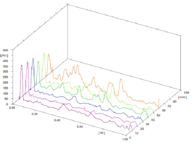 ArticleViewAbstractPharmacognosy Journal,2021,13,6,1516-1526.DOI:10.5530/pj.2021.13.193Published:November 2021Type:Research ArticleCompound Analysis and Genetic Study of Selected Plectranthus scutellarioides Varieties from IndonesiaAyun Dwi Astuti, Awaluddin Iwan Perdana, Rosdiana Natzir, Muhammad Nasrum Massi, Subehan, and Gemini Alam Ayun Dwi Astuti1, Awaluddin Iwan Perdana2, Rosdiana Natzir3, Muhammad Nasrum Massi4, Subehan5, Gemini Alam5,* 1Department of Medicinal Science, Faculty of Medicine, Hasanuddin University, Makassar 90245, INDONESIA. 2Research Laboratory, Department of Chemistry, Faculty of Science and Technology, State Islamic University- Alauddin, Gowa 92118, INDONESIA. 3Department of Biochemistry, Faculty of Medicine, Hasanuddin University, Makassar 90245, INDONESIA. 4Department of Microbiology, Faculty of Medicine, Hasanuddin University, Makassar 90245, INDONESIA. 5Department of Pharmacognosy- Phytochemistry, Faculty of Pharmacy, Hasanuddin University, Makassar 90245, INDONESIA. Abstract:Background: Plectranthus scutellarioides is one of medicinal plants in Indonesia, which has several hundred varieties but only one is known by local people as medicine. Objective: Six varieties of Plectranthus scutellarioides were analyzed for their total flavonoid content, chemical compound, and moleculer genetic. Methods: TFCs were analyzed using AlCl3 colorimetric method, chemical compounds were identified using TLC-scanning densitometer, GC-MS, and FTIR, moleculer genetic were observed using DNA barcoding rbcL gene. Results: The TFCs of trailing psycholeus, and flamingo varieties were higher than the other varieties. TLC-scanner densitometer showed that color blaze dark star, trailing psycholeus, and trailing queen had similar profiles, as did beale street, trailing rose, and flamingo. The GCMS results showed notable difference in trailing psycholeus and trailing queen which have 2-oleoylglycerol and 9(E),11(E)-conjugated linoleic acid in larger amounts than others, respectively. Multivariate analysis of the FTIR spectra showed the closeness of all varieties, except for beale street which had the lowest similarity with the others. Despite that, genetic studies using the rbcL gene and comparing the results with the P. scutellarioides gene in the database (MW538954.1) showed beale street was the most similar (99.52%). The phylogenetic analysis showed that beale street and trailing psycholeus have the highest similarity among others. Conclusions: There is a slight difference in chemical composition between varieties as well as the genetic. Therefore, quality control or standardisation is needed in the use of this plant as a traditional medicine. Keywords:Coleus scutellarioides, Densitometer, Flavonoid, FTIR, GC-MS, RbcL.View:PDF (3.09 MB) PDF Images Spectra FTIR of P. scutellariodes varieties, A. Ethanol extract by maceration, B. Ethanol extract by soxhlet ‹ The Effect of Mahkota Dewa (Phaleria macrocarpa) Leaf Extract on the Mucin 1 Expression in Mice Colonic Epithelial Cells Induced by Dextran Sodium Sulfate (DSS) up Modeling relation between hospital efficiency and customer satisfaction of tertiary hospitals: A case of data envelopment analysis ›