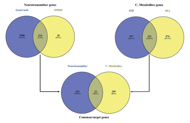 ArticleViewAbstractPharmacognosy Journal,2025,17,4,407-419.DOI:10.5530/pj.2025.17.51Published:August 2025Type:Original ArticleMechanistic Insights on the Neuro-Modulatory Potential of Cannabis sativa: A Network Pharmacology- and Molecular Dynamics Simulation-Based ApproachChristina Peter, Halimat Yusuf Lukman, Nosipho Wendy S’thebe, Usman Abiola Sanni, and Saheed SABIU Christina Peter1, Halimat Yusuf Lukman1, Nosipho Wendy S’thebe1, Usman Abiola Sanni2,3, Saheed Sabiu1* 1Department of Biotechnology and Food Science, Faculty of Applied Sciences, Durban University of Technology, P. O. Box 1334, Durban 4000, SOUTH AFRICA 2Department of Paediatrics, Federal Medical Centre, Birnin Kebbi, Nigeria, WEST AFRICA 3Partners in Health, Koidu, Kono, Sierra Leone, WEST AFRICA Abstract:Background: Although, studies have reported the use of cannabis as a temporary antidepressant and implicated its chronic use in neurological diseases, the exact mechanisms through which these happen remain elusive. Objective: This study aims to investigate the neuro-modulatory potential of cannabis as antidepressant and its role in neurological disorders Methodology: Network pharmacology and molecular dynamics simulation were employed to unveil the mechanism of cannabis as a temporary antidepressant and potential agent implicated in neurological disorders. Results: A total of 156 cannabis metabolites were retrieved from data mining. 22 genes were common in cannabis metabolites and central nervous system (CNS) neurotransmitters’ genes. Glutamate receptor activity and neuroactive ligand receptor activity (NALR) were the most enriched biological process and signalling pathway, respectively, with cannabinoid receptor 1 (CNR1) and glutamate metabotropic receptor 2 (GRM2) being the hub targets in the NALR pathway. A probe into the structural stability of top-ranked metabolites identified cholesterol- CNR1 (-73.88 kcal/mol) and campesterol-CNR1 (-65.96 kcal/mol) with lower free binding energy than reference antidepressant drug (anandamide) (-65.08 kcal/mol), whereas for GRM2, the binding free energy of nerolidol (-43.57 kcal/mol) which was the least among the top ranked metabolites was higher compared to anandamide (-58.78 kcal/mol). Conclusion: Data from this study shows that the profiled cannabis metabolites displayed modulatory effects on key neurotransmitters of the CNS and their receptors and formed stable binding interaction with genes implicated in brain functioning suggestive of the mechanistic effect of cannabis on brain activity during depression and chronic use. Keywords:Cannabinoid receptors, Cannabis, Depression, Neurological diseases, NeurotransmittersView:PDF (1.71 MB) PDF Images Common genes found between GeneCards and OMIM, SEA and STP as well as overlapping genes of C. sativa metabolites and neurotransmitters of the CNS. ‹ Interpersonal Communication Training as an Effective Strategy to Optimize Multiple Micronutrient Supplementation (MMS) Utilization in Preventing Maternal and Neonatal Deaths up Antioxidant Activity and Tyrosinase Inhibition of Avocado (Persea americana Mill.) Leaves and Seeds Extracts ›