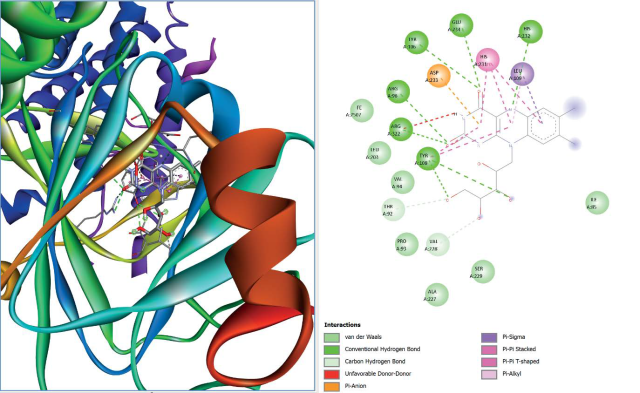 ArticleViewAbstractPharmacognosy Journal,2025,17,4,450-457.DOI:10.5530/pj.2025.17.57Published:August 2025Type:Original ArticleMoringa oleifera Fruit Secondary Metabolites Role in Sarcopenic Obesity via Fat Mass and Obesity-Associated Protein: An In Silico AnalysisMila Citrawati, Assyafiya Salwa, Yuni Setyaningsih, Cut Fauziah, and Tiwuk Susantiningsih Mila Citrawati1,2, Assyafiya Salwa1*, Yuni Setyaningsih1,2, Cut Fauziah1, Tiwuk Susantiningsih1,2 1Faculty of Medicine, Universitas Pembangunan Nasional Veteran Jakarta, South Jakarta, Jakarta, 12450, INDONESIA 2Research Centre for Moringa Oleifera, Universitas Pembangunan Nasional Veteran Jakarta, South Jakarta, Jakarta, 12450, INDONESIA Abstract:Background: Sarcopenic obesity (SO) refers to the coexistence of sarcopenia and obesity, pathogenic interaction between loss of skeletal muscle and function and fat-mass accumulation. Fat mass and obesityassociated (FTO) protein is one of the proteins that involved in pathophysiology of SO. Moringa oleifera is one of potential drug candidates for degenerative diseases due to its various bioactive metabolites from most parts of this plant. Objective: An in silico study, employing computational methods to simulate molecular interactions through molecular docking, aims to investigate the potential of Moringa oleifera fruit secondary metabolites to interact with FTO protein. Methodology: This study was carried out the molecular docking analysis of Moringa oleifera fruit secondary metabolites that was retrieved from database and have been screened for drug-likeness and toxicity for FTO protein inhibitor candidates. Molecular docking was using Pyrx v0.8, AutoDock 4.2.6 by AutoDockTools 1.5.7, and BIOVIA Discovery studio client 2025 as visualization tools. Results: This study showed 9 bioactive compounds from Moringa oleifera fruit is bioavailable and safe for oral drugs according to Lipinski Rule of 5 (RO5) and Oral Rat Acute Toxicity (LD50). Molecular docking results showed riboflavin is the most potential compound as FTO protein inhibitor as its strongest affinity and interaction in active site compared to FTO protein native ligands 3-methylthymidine (DT). Conclusion: Therefore, Moringa oleifera fruit is potential for SO therapy candidates through regulation of FTO protein activity. Keywords:and riboflavin, FTO protein, Molecular docking, Moringa oleifera fruit, sarcopenic obesity (SO)View:PDF (930.7 KB) PDF Images Docking interactions of riboflavin ligand in the active site of FTO protein (3LFM), A) 3D structure, B) 2D Structure ‹ Analysis of Fatty Acids in Wool Oil Extracted from Mongolian Sheep Wool using Gas Chromatography and Infrared Spectrophotometry up Sub-Acute Anti-Inflammatory Activity of Leucas indica Ethanolic Leaf Extract in Wistar Rats Using the Cotton Pellet Granuloma Model ›