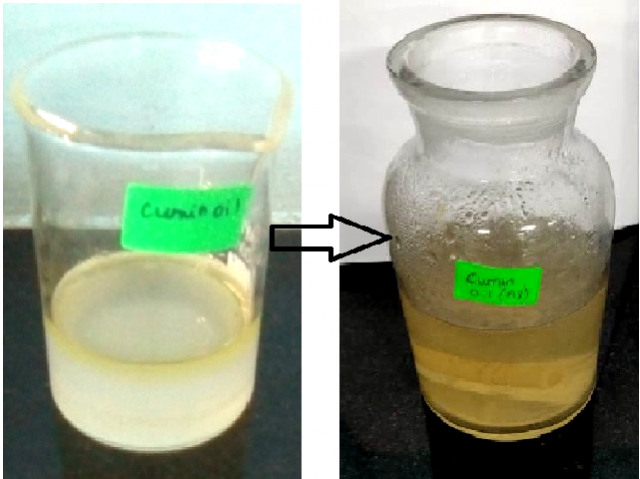 ArticleViewAbstractPharmacognosy Journal,2019,11,4,787-789.DOI:10.5530/pj.2019.11.125Published:July 2019Type:Original Research StudyAntioxidant Activity of Cumin Oil Mediated Silver NanoparticlesNagarajan Keerthiga, Roy Anitha, S Rajeshkumar, and Thangavelu Lakshmi Nagarajan Keerthiga, Roy Anitha*, S Rajeshkumar, Thangavelu Lakshmi Saveetha Dental College, Saveetha Institute of Medical and Technical Sciences, Saveetha University, Chennai, INDIA. Abstract:Aim: The aim of the study was to employ cumin oil in the synthesis of silver nanoparticles and check the antioxidant activity of the cumin oil mediated silver nanoparticles. Background: The introduction of Nanoparticles (NPs) has revolutionized every field including medicine, nutrition and energy. The use of nanotechnology in medicine especially for drug delivery is shown to have various benefits. Nanoparticles are being used to reduce toxicity and side effects that drugs may impose to the patient. Cumin (Cuminum cyminum) is a common spice used for its distinct aromatic effect. Plant mediated biological synthesis of nanoparticles has been gaining importance due to its simplicity and eco friendliness. This study therefore was aimed to synthesize cumin oil mediated silver nanoparticles and assess its antioxidant activity. Materials and Methods: Cumin oil mediated silver nanoparticles were initially synthesised and characterised by UV-Visible spectrophotometer and TEM. Further the cumin oil mediated AgNPs were subjected to DPPH assay to determine the antioxidant activity. Results: Cumin oil mediated AgNPs were biosynthesised with ease and showed good antioxidant activity compared to standard. Conclusion: This study conclude that cumin seed oil mediated silver nanoparticles have the potential to be used as an effective antioxidant. Hence, it may be employed in large scale production and may be used in many medicinal applications where there is a need for antioxidant. Keywords:AgNP, antioxidant activity, Biosynthesis, Cumin oil, NanoparticlesView:PDF (825.68 KB) PDF Images Visual observation of formation of AgNPs ‹ Isolation of Oxoaphorpine Alkaloid from Bark of Cryptocarya Ferrea up Difference of Acidic Adding Effect in Ethanol Extraction of White Mulberry Stem Bark (Morus alba) and DPP-4 Inhibiting Activity Screening for Identifying its Antidiabetic Potential ›